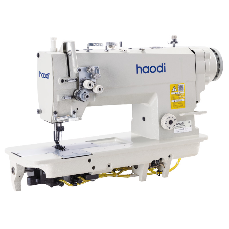 1.双直针立式自动加油,旋梭勾线形成双线锁式线迹